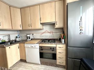 Dispone de tres habitaciones y sus respectivos armarios empotrados, además de dos baños completos con plato de ducha. El salón es espacioso y cuenta con balcón, ideal para disfrutar del exterior. La cocina es independiente y está conectada con una galería, ofreciendo un espacio funcional y bien distribuido.